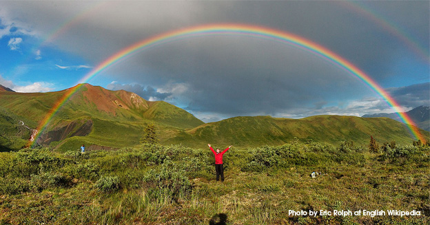 As quickly as the storm came, it went. The winds quieted down with the rain dropping to a light drizzle. Curious to see if more were to come, I looked outside my patio. And there it was… a beautiful, majestic rainbow.